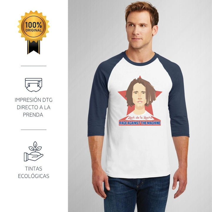 Playera de adulto raglán manga 3/4, cuello redondo para hombre nueva, diseño Rock RATM Zack de la Rocha original impreso con tecnología DTG (directo a la prenda) tacto cero, uso casual o deportiva, 100% algodón pre encogido, estructura tubular sin costuras laterales. Colores de camiseta para caballero: Blanco-Negro, Blanco-Marino.