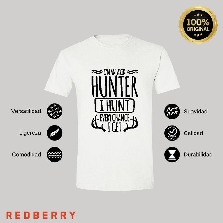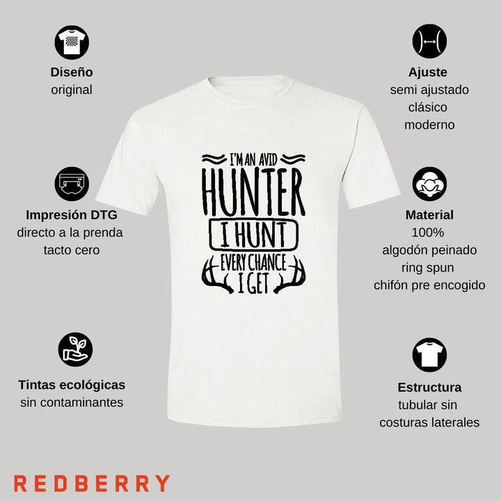 Playera marca REDBERRY caballero cuello redondo de adulto manga corta, para hombre nueva, con temática de cacería, uso casual o deportiva, 100% algodón peinado, estructura tubular sin costuras laterales. Playera camuflaje cacería