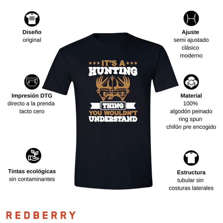 Playera marca REDBERRY caballero cuello redondo de adulto manga corta, para hombre nueva, con temática de cacería, uso casual o deportiva, 100% algodón peinado, estructura tubular sin costuras laterales. Playera camuflaje cacería