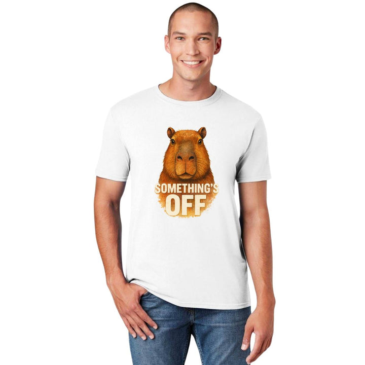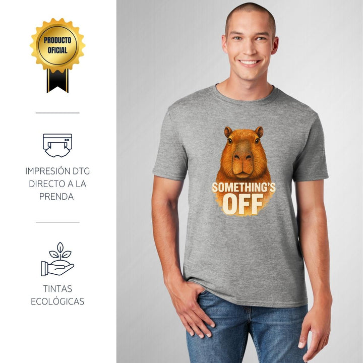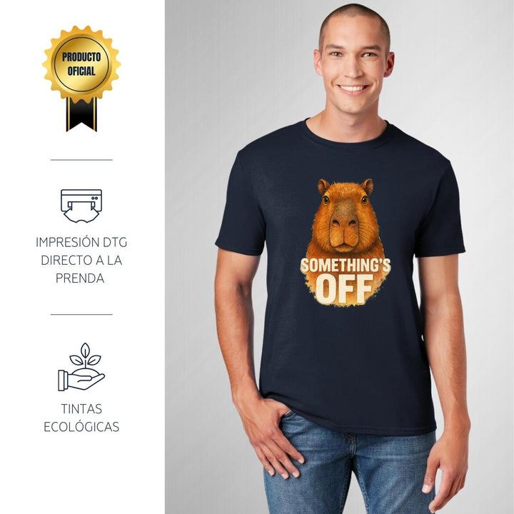 Playera de adulto manga corta, cuello redondo para hombre nueva, diseño Capibara Carpincho Frases original impreso con tecnología DTG (directo a la prenda) tacto cero, uso casual o deportiva, 100% algodón peinado, estructura tubular sin costuras laterales. Colores de camiseta para caballero: Negro, Blanco, Azul Marino, Gris.