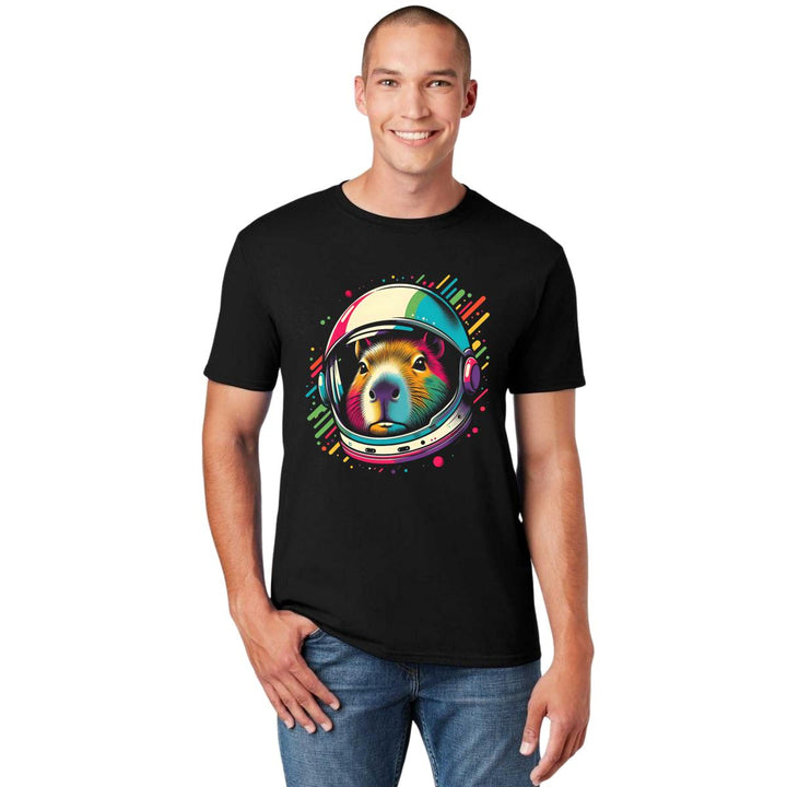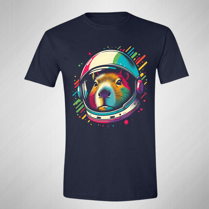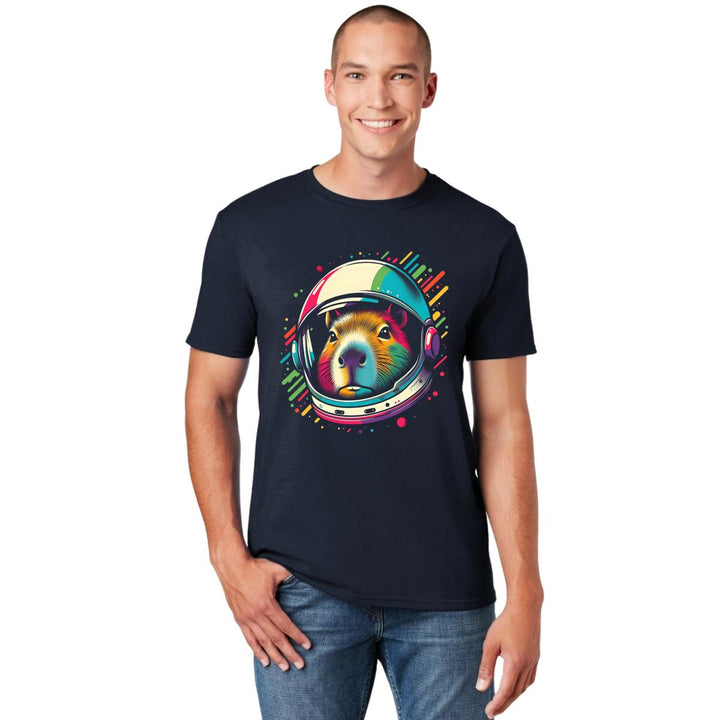 Playera de adulto manga corta, cuello redondo para hombre nueva, diseño Capibara Carpincho Frases original impreso con tecnología DTG (directo a la prenda) tacto cero, uso casual o deportiva, 100% algodón peinado, estructura tubular sin costuras laterales. Colores de camiseta para caballero: Negro, Azul Marino.