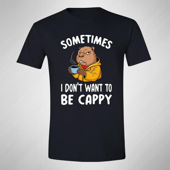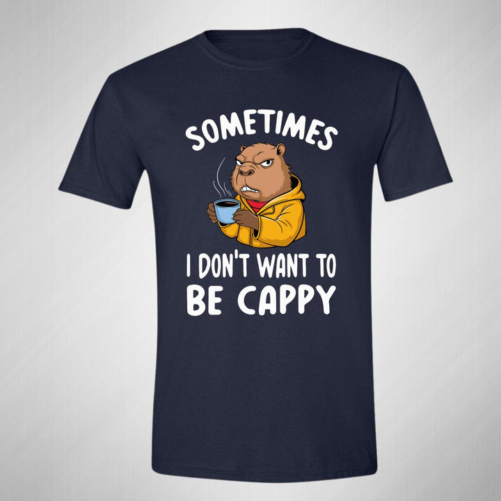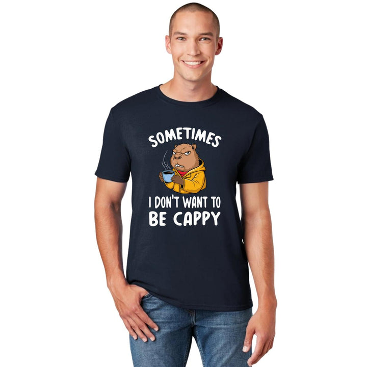 Playera de adulto manga corta, cuello redondo para hombre nueva, diseño Capibara Carpincho Frases original impreso con tecnología DTG (directo a la prenda) tacto cero, uso casual o deportiva, 100% algodón peinado, estructura tubular sin costuras laterales. Colores de camiseta para caballero: Negro, Azul Marino.