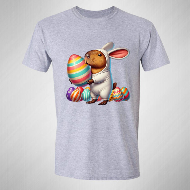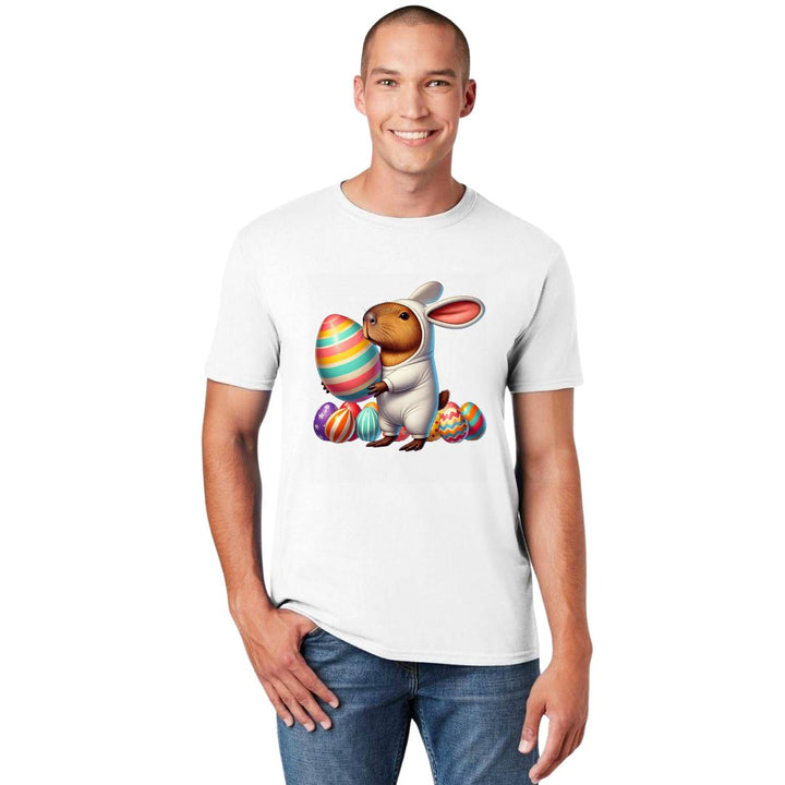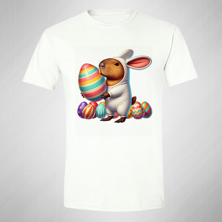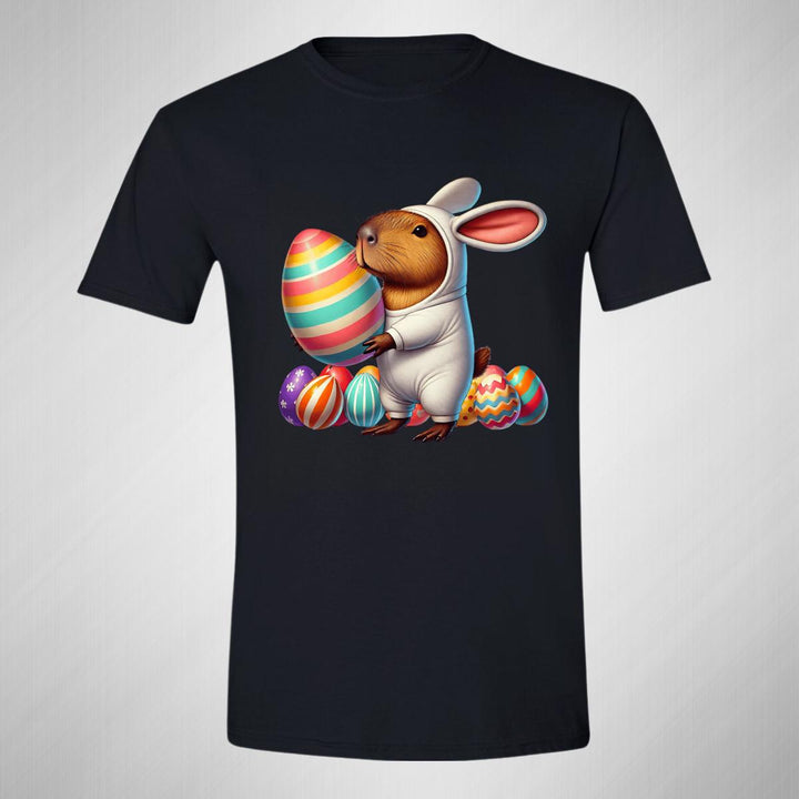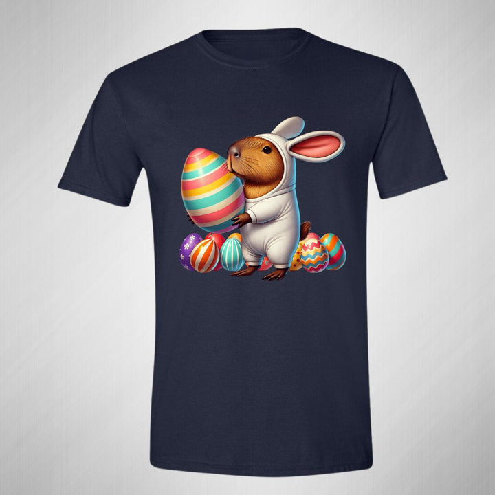 Playera de adulto manga corta, cuello redondo para hombre nueva, diseño Capibara Carpincho Frases original impreso con tecnología DTG (directo a la prenda) tacto cero, uso casual o deportiva, 100% algodón peinado, estructura tubular sin costuras laterales. Colores de camiseta para caballero: Negro, Blanco, Azul Marino, Gris.