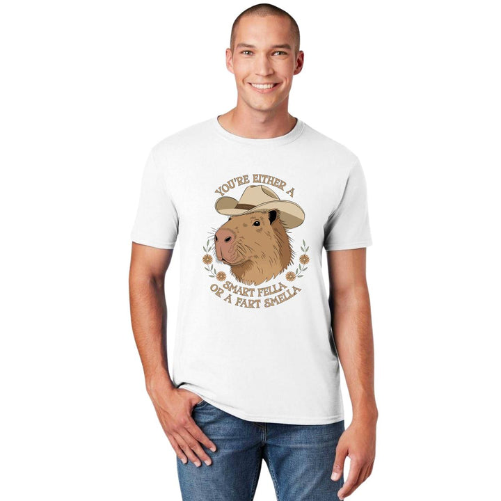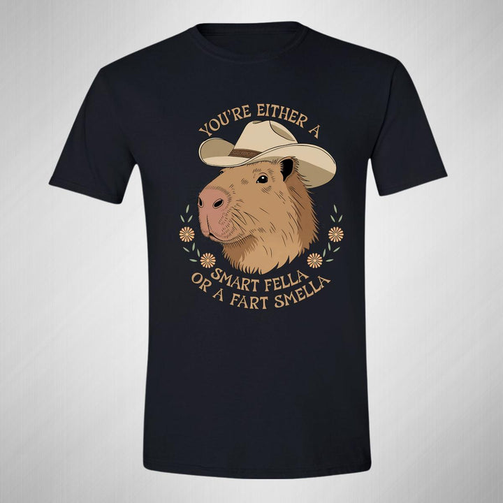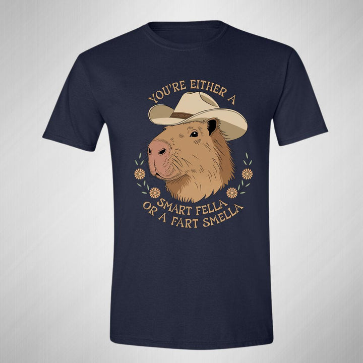 Playera de adulto manga corta, cuello redondo para hombre nueva, diseño Capibara Carpincho Frases original impreso con tecnología DTG (directo a la prenda) tacto cero, uso casual o deportiva, 100% algodón peinado, estructura tubular sin costuras laterales. Colores de camiseta para caballero: Negro, Blanco, Azul Marino, Gris.