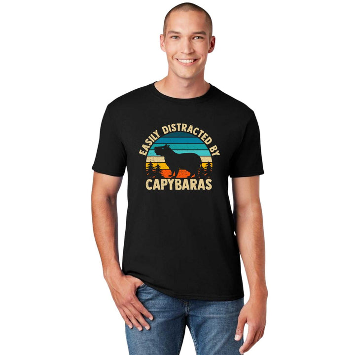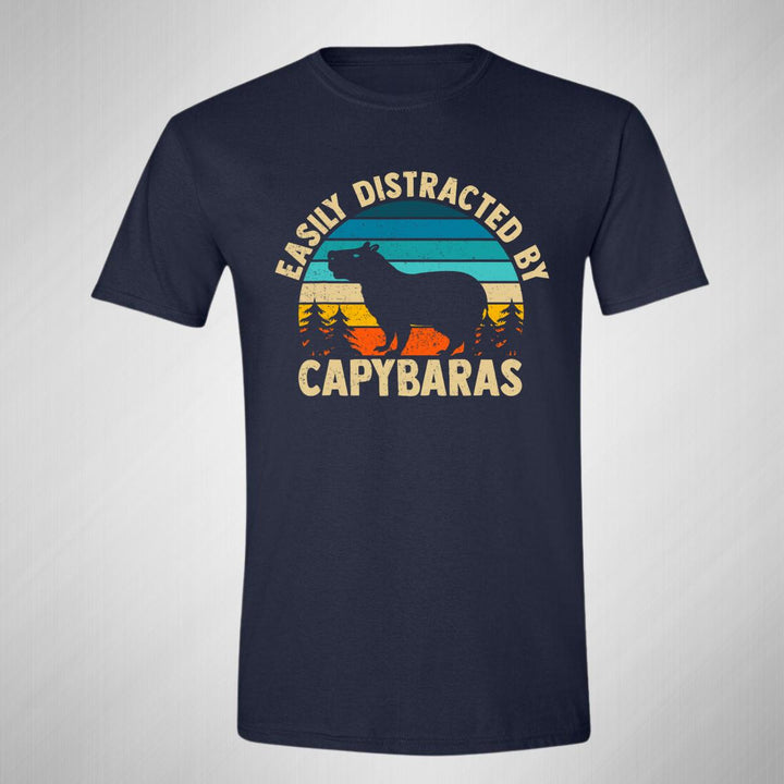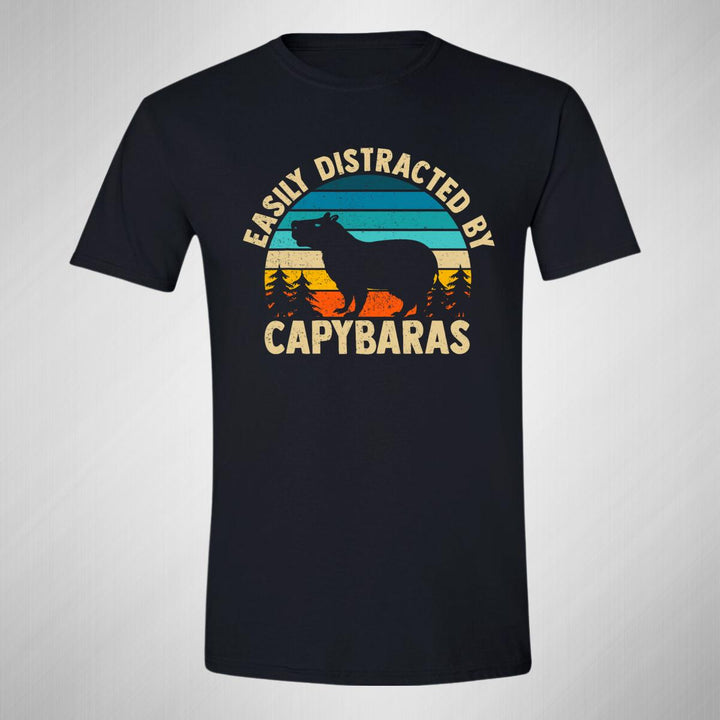 Playera de adulto manga corta, cuello redondo para hombre nueva, diseño Capibara Carpincho Frases original impreso con tecnología DTG (directo a la prenda) tacto cero, uso casual o deportiva, 100% algodón peinado, estructura tubular sin costuras laterales. Colores de camiseta para caballero: Negro, Azul Marino.