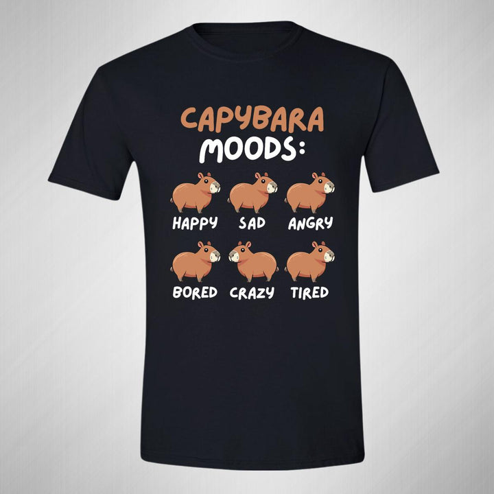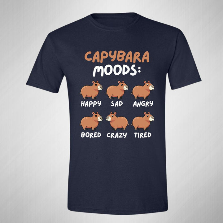 Playera de adulto manga corta, cuello redondo para hombre nueva, diseño Capibara Carpincho Frases original impreso con tecnología DTG (directo a la prenda) tacto cero, uso casual o deportiva, 100% algodón peinado, estructura tubular sin costuras laterales. Colores de camiseta para caballero: Negro, Azul Marino.