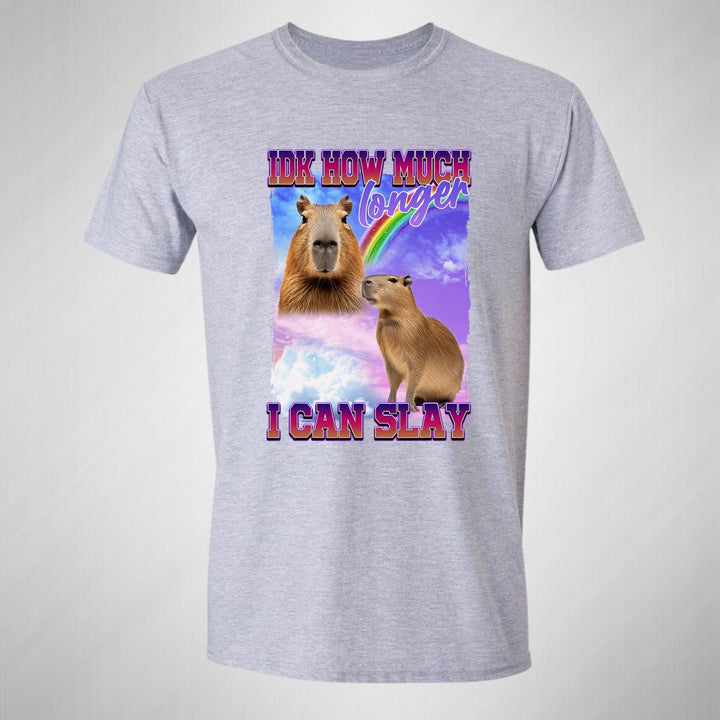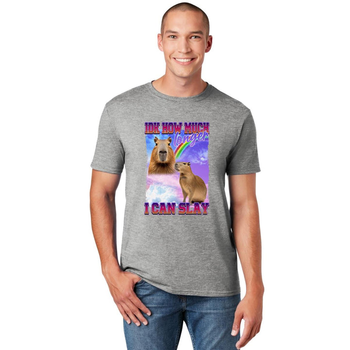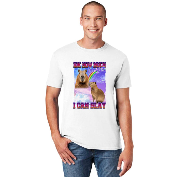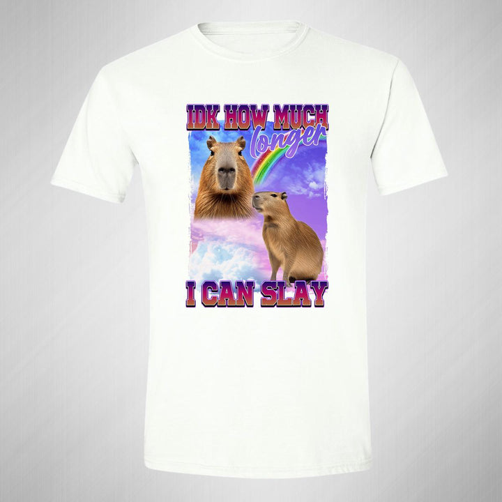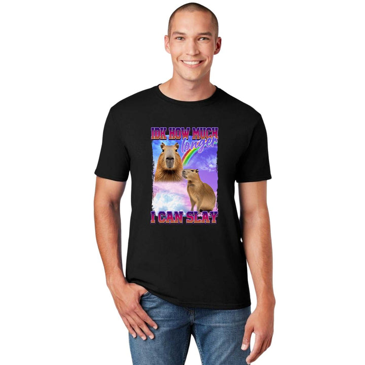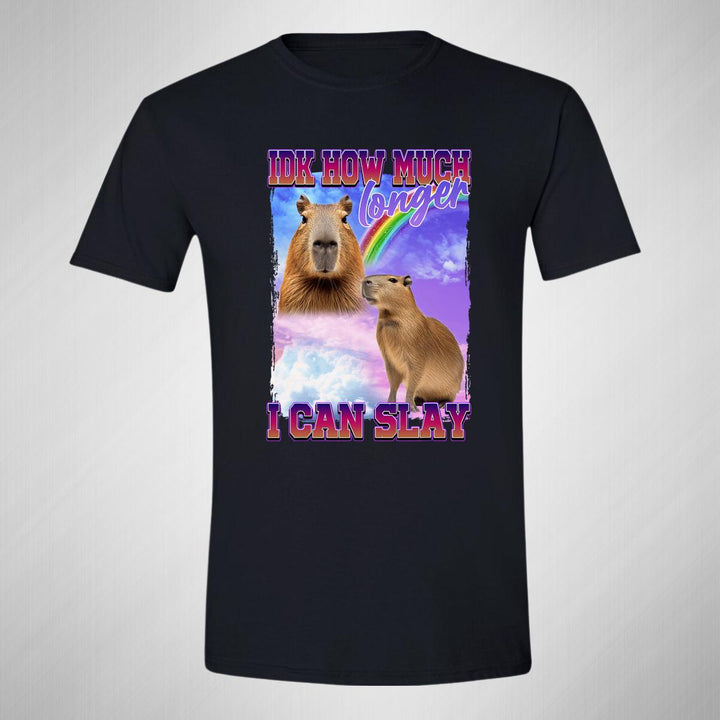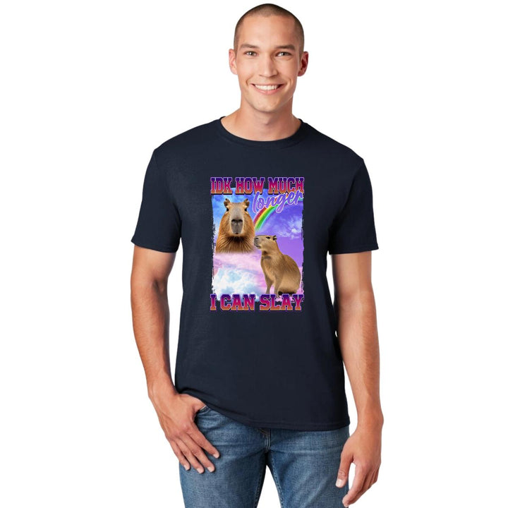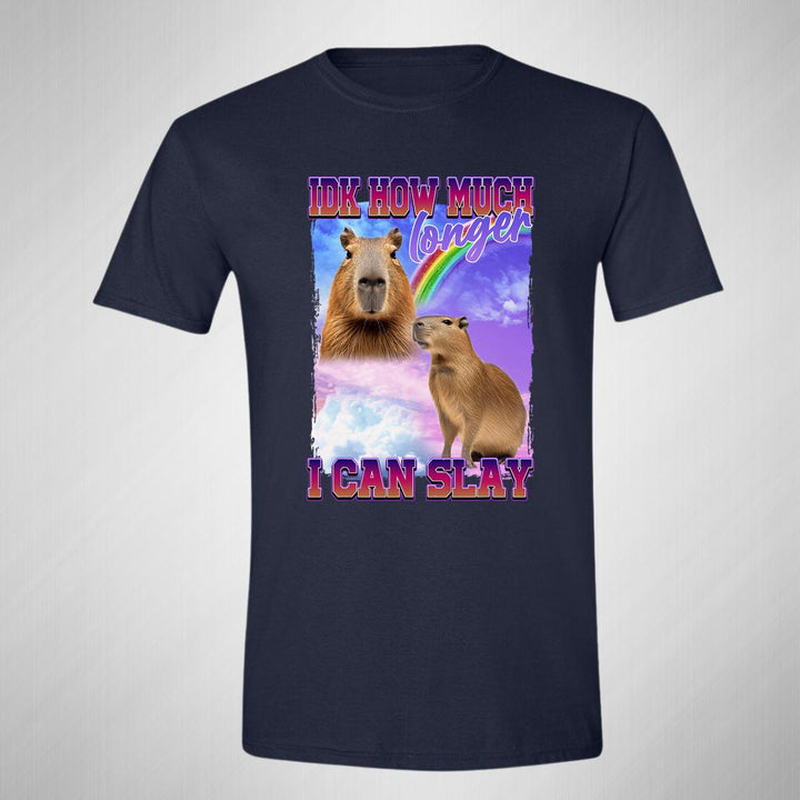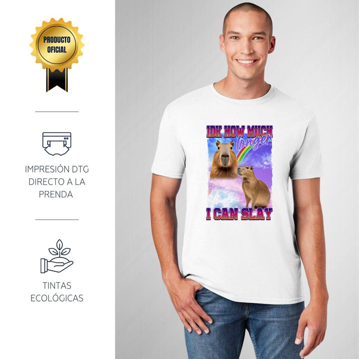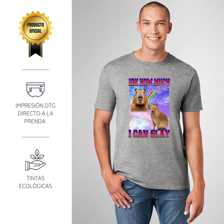 Playera de adulto manga corta, cuello redondo para hombre nueva, diseño Capibara Carpincho Frases original impreso con tecnología DTG (directo a la prenda) tacto cero, uso casual o deportiva, 100% algodón peinado, estructura tubular sin costuras laterales. Colores de camiseta para caballero: Negro, Blanco, Azul Marino, Gris.