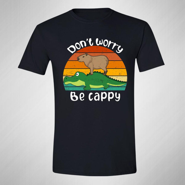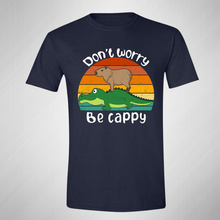 Playera de adulto manga corta, cuello redondo para hombre nueva, diseño Capibara Carpincho Frases original impreso con tecnología DTG (directo a la prenda) tacto cero, uso casual o deportiva, 100% algodón peinado, estructura tubular sin costuras laterales. Colores de camiseta para caballero: Negro, Azul Marino.