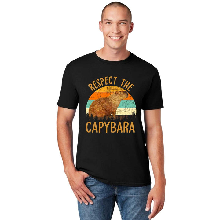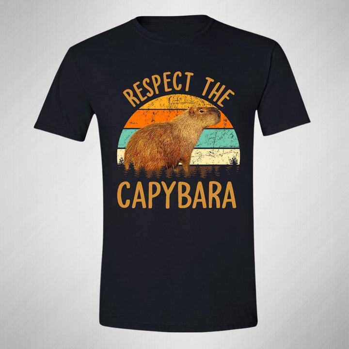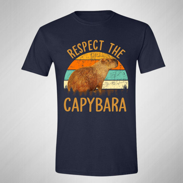 Playera de adulto manga corta, cuello redondo para hombre nueva, diseño Capibara Carpincho Frases original impreso con tecnología DTG (directo a la prenda) tacto cero, uso casual o deportiva, 100% algodón peinado, estructura tubular sin costuras laterales. Colores de camiseta para caballero: Negro, Azul Marino.