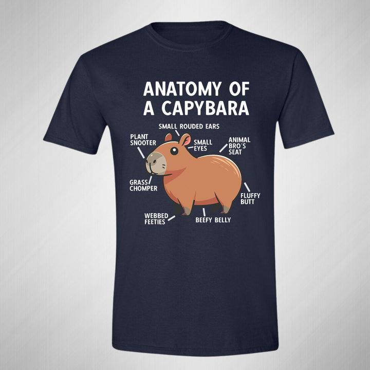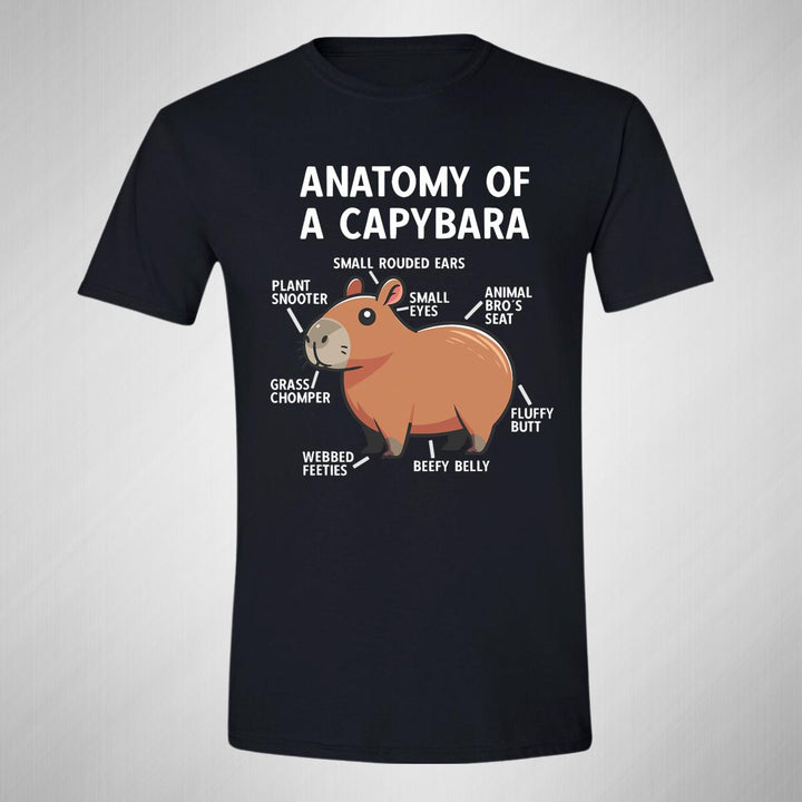 Playera de adulto manga corta, cuello redondo para hombre nueva, diseño Capibara Carpincho Frases original impreso con tecnología DTG (directo a la prenda) tacto cero, uso casual o deportiva, 100% algodón peinado, estructura tubular sin costuras laterales. Colores de camiseta para caballero: Negro, Azul Marino.