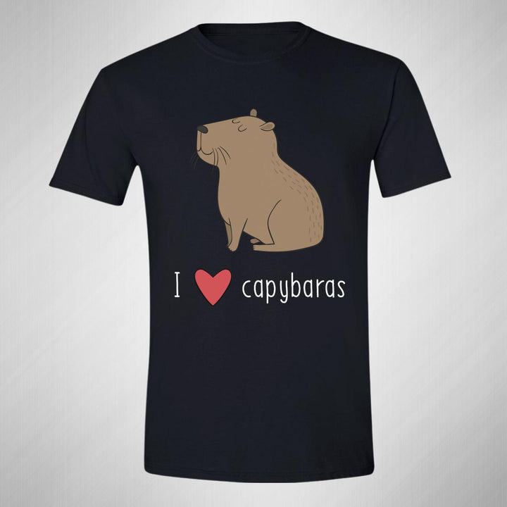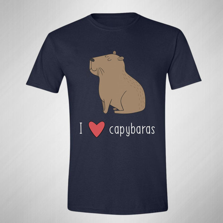 Playera de adulto manga corta, cuello redondo para hombre nueva, diseño Capibara Carpincho Frases original impreso con tecnología DTG (directo a la prenda) tacto cero, uso casual o deportiva, 100% algodón peinado, estructura tubular sin costuras laterales. Colores de camiseta para caballero: Negro, Azul Marino.
