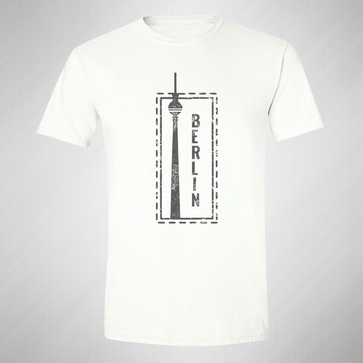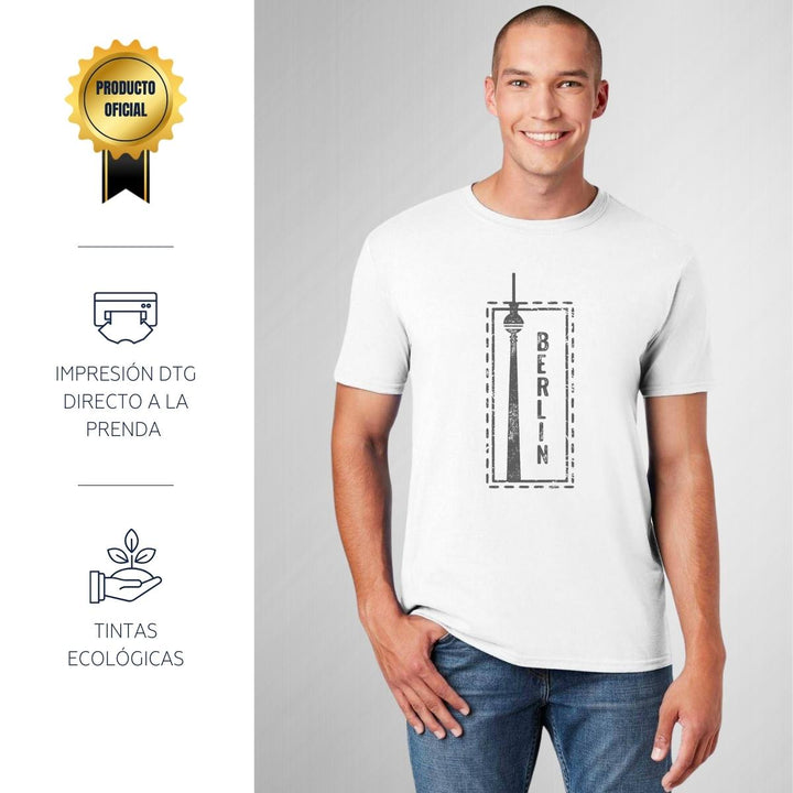 Playera de adulto manga corta, cuello redondo para hombre nueva, diseño Ciudad Berlín Alemania original impreso con tecnología DTG (directo a la prenda) tacto cero, uso casual o deportiva, 100% algodón peinado, estructura tubular sin costuras laterales. Colores de camiseta para caballero: Blanco.