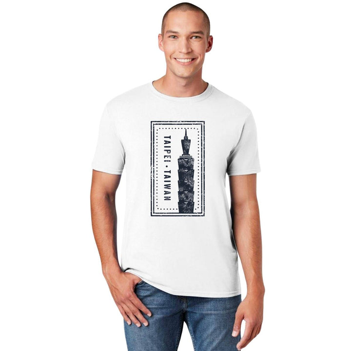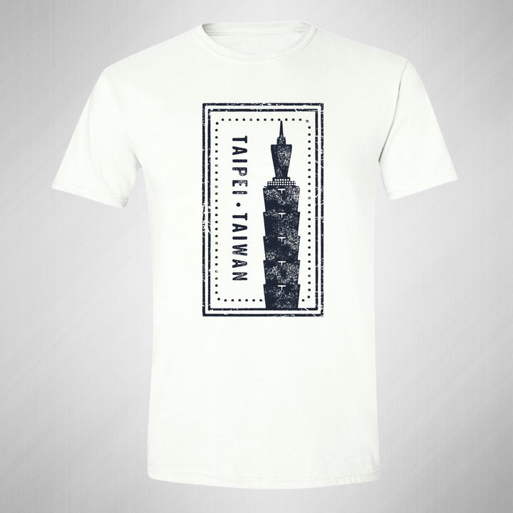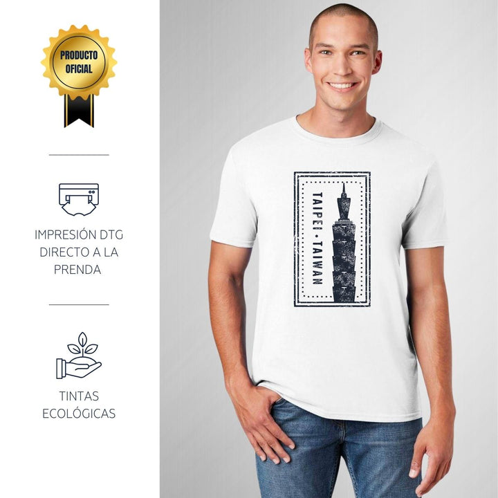 Playera de adulto manga corta, cuello redondo para hombre nueva, diseño Ciudad Taipei Taiwan original impreso con tecnología DTG (directo a la prenda) tacto cero, uso casual o deportiva, 100% algodón peinado, estructura tubular sin costuras laterales. Colores de camiseta para caballero: Blanco.