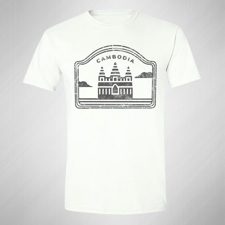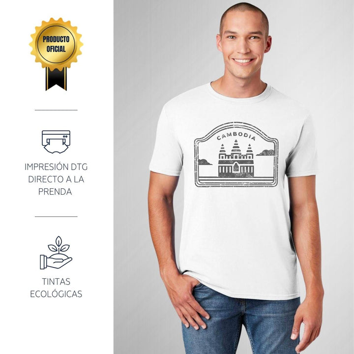 Playera de adulto manga corta, cuello redondo para hombre nueva, diseño País Camboya original impreso con tecnología DTG (directo a la prenda) tacto cero, uso casual o deportiva, 100% algodón peinado, estructura tubular sin costuras laterales. Colores de camiseta para caballero: Blanco.