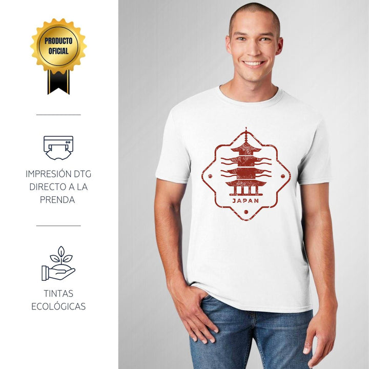 Playera de adulto manga corta, cuello redondo para hombre nueva, diseño País Japón original impreso con tecnología DTG (directo a la prenda) tacto cero, uso casual o deportiva, 100% algodón peinado, estructura tubular sin costuras laterales. Colores de camiseta para caballero: Blanco.