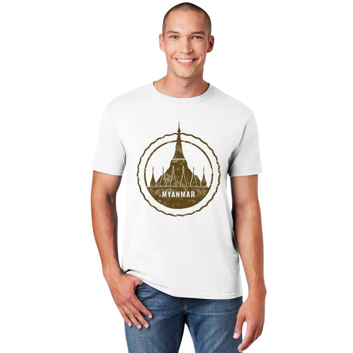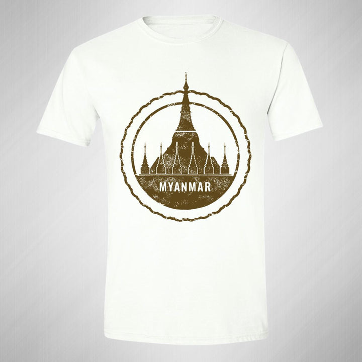 Playera de adulto manga corta, cuello redondo para hombre nueva, diseño País Myanmar Birmania original impreso con tecnología DTG (directo a la prenda) tacto cero, uso casual o deportiva, 100% algodón peinado, estructura tubular sin costuras laterales. Colores de camiseta para caballero: Blanco.