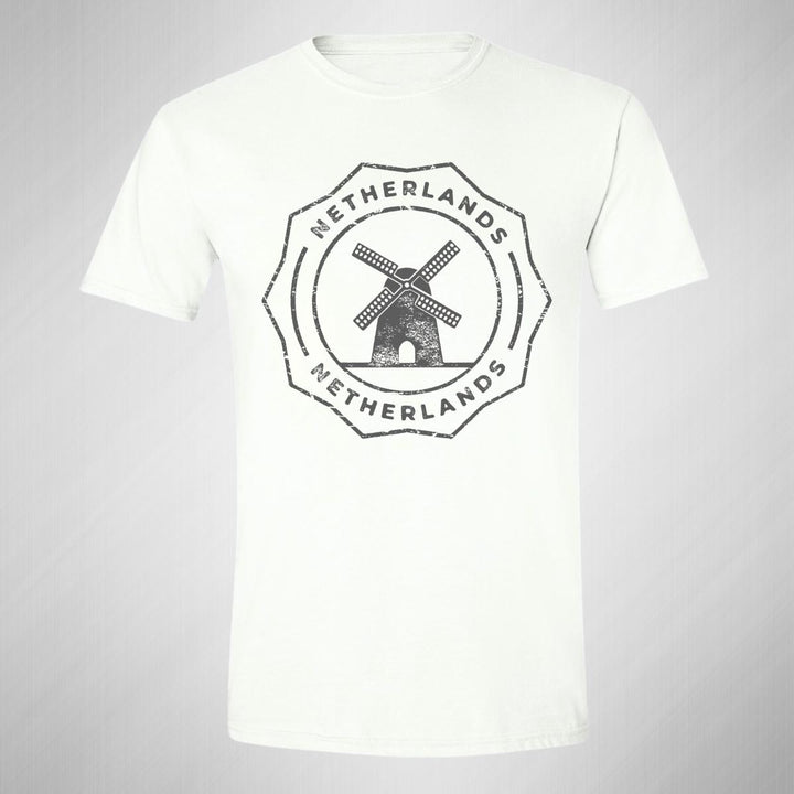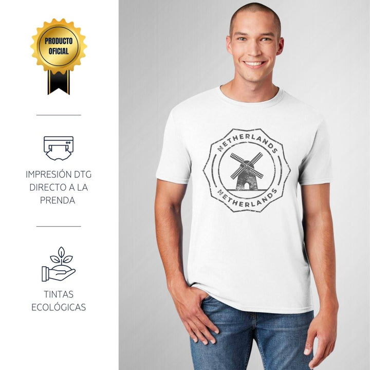 Playera de adulto manga corta, cuello redondo para hombre nueva, diseño País Países Bajos original impreso con tecnología DTG (directo a la prenda) tacto cero, uso casual o deportiva, 100% algodón peinado, estructura tubular sin costuras laterales. Colores de camiseta para caballero: Blanco.