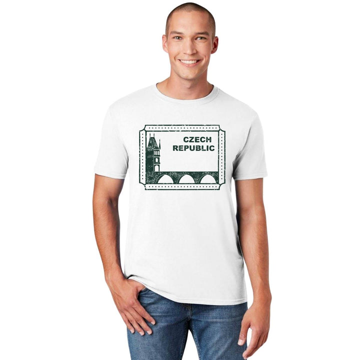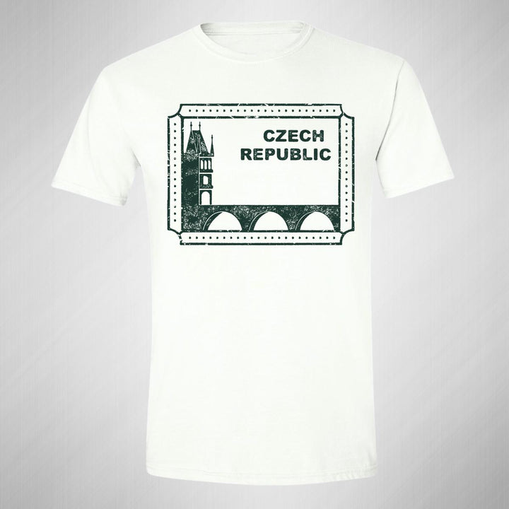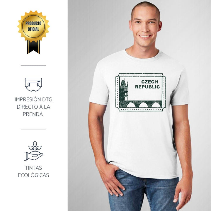 Playera de adulto manga corta, cuello redondo para hombre nueva, diseño País República Checa original impreso con tecnología DTG (directo a la prenda) tacto cero, uso casual o deportiva, 100% algodón peinado, estructura tubular sin costuras laterales. Colores de camiseta para caballero: Blanco.