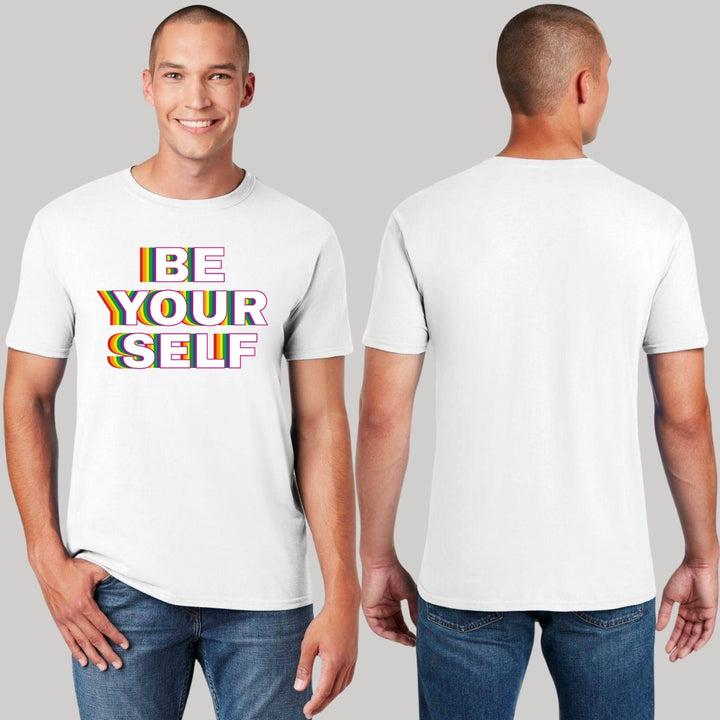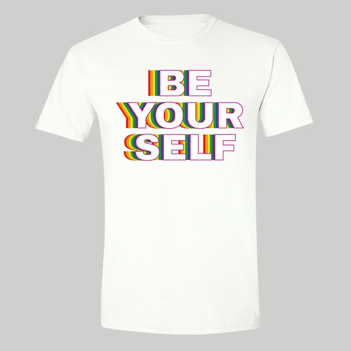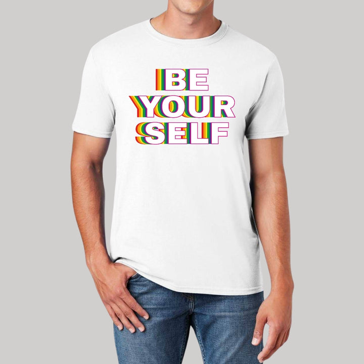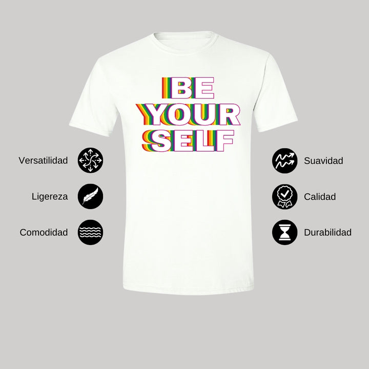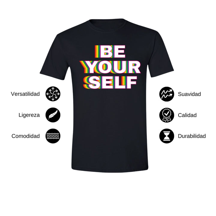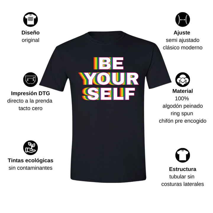 Playera de adulto manga corta, cuello redondo para hombre nueva, diseño Pride Be yourself original impreso con tecnología DTG (directo a la prenda) tacto cero, uso casual o deportiva, 100% algodón peinado, estructura tubular sin costuras laterales.