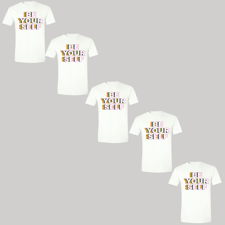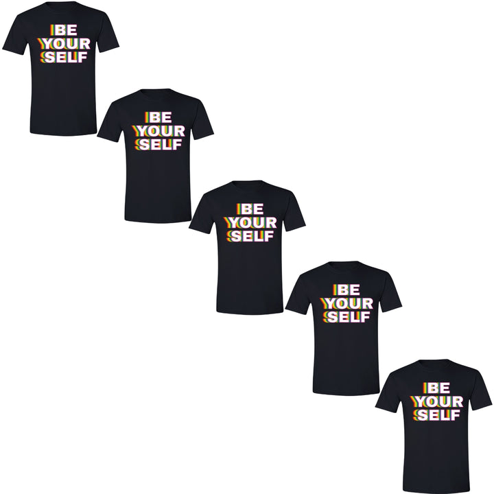 Paquete de 5 playeras de adulto manga corta, cuello redondo para hombre nueva, diseño Pride Be yourself original impreso con tecnología DTG (directo a la prenda) tacto cero, uso casual o deportiva, 100% algodón peinado, estructura tubular sin costuras laterales.