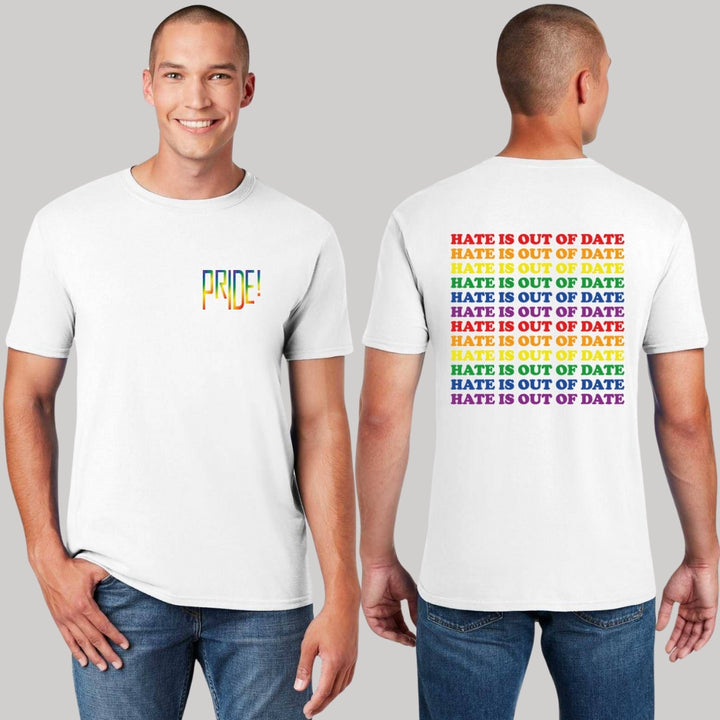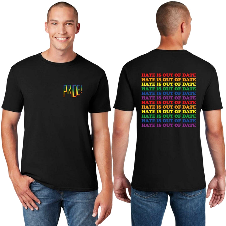 Paquete de 3 playeras de adulto manga corta, cuello redondo para hombre nueva, diseño Pride Hate is out of date original impreso con tecnología DTG (directo a la prenda) tacto cero, uso casual o deportiva, 100% algodón peinado, estructura tubular sin costuras laterales.
