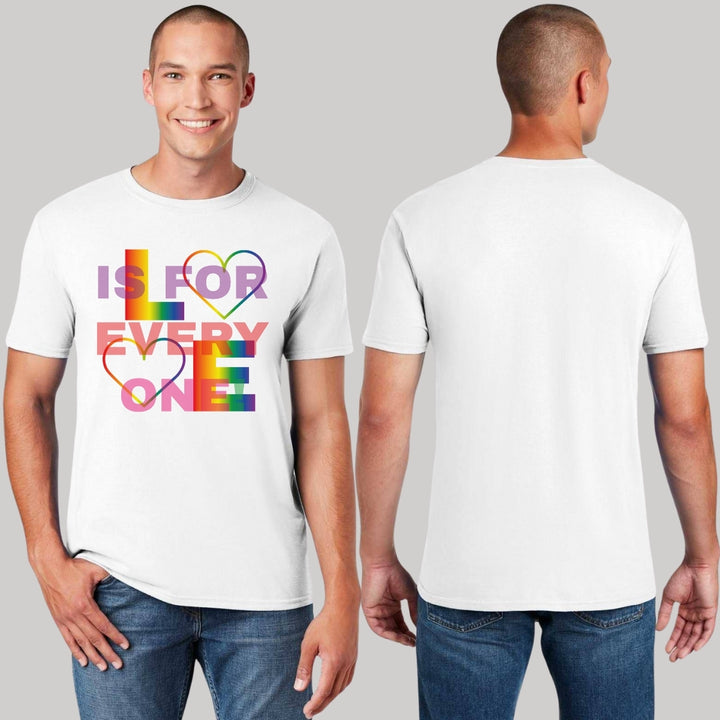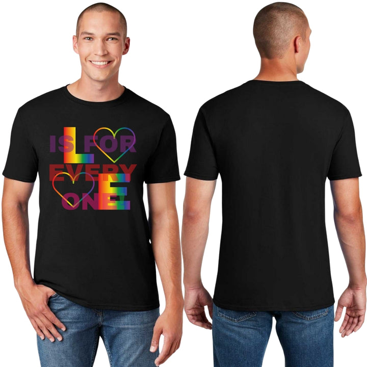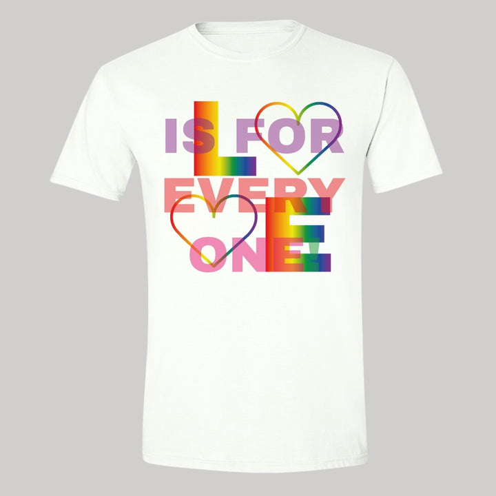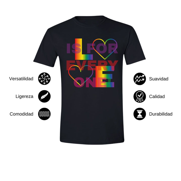 Playera de adulto manga corta, cuello redondo para hombre nueva, diseño Pride Love is for everyone original impreso con tecnología DTG (directo a la prenda) tacto cero, uso casual o deportiva, 100% algodón peinado, estructura tubular sin costuras laterales.
