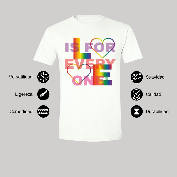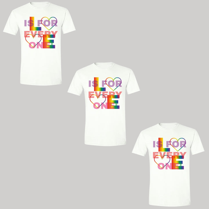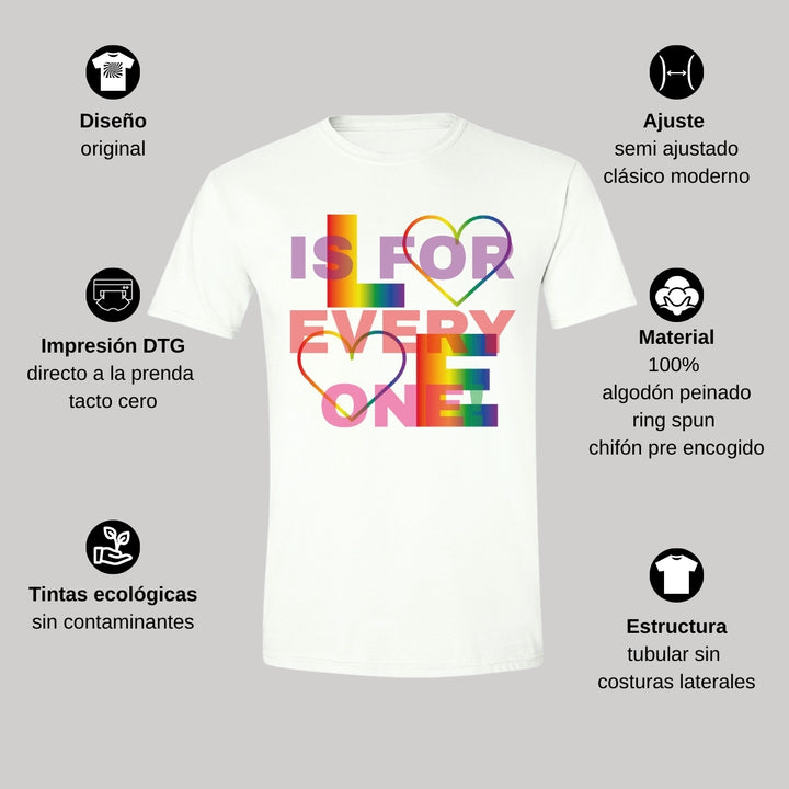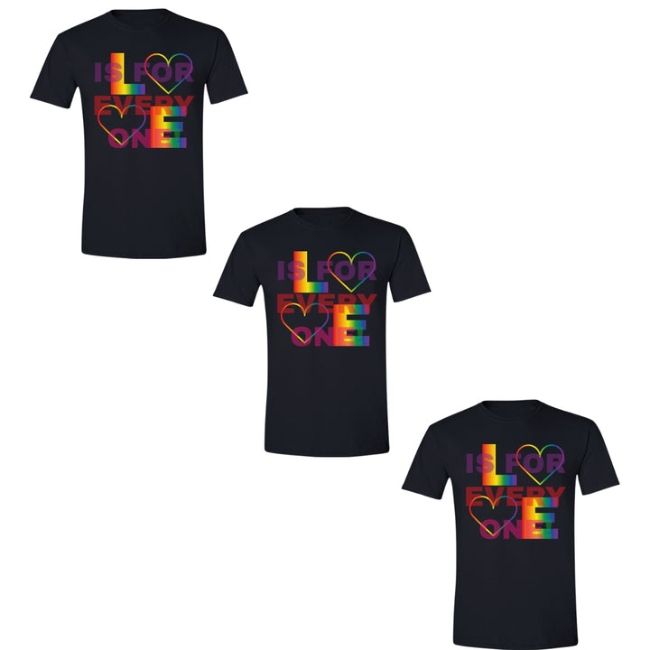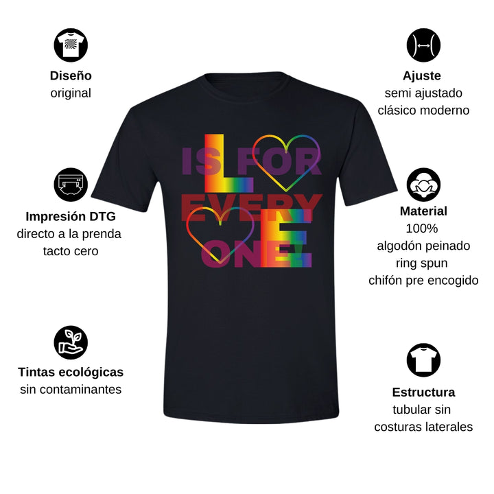 Paquete de 3 playeras de adulto manga corta, cuello redondo para hombre nueva, diseño Pride Love is for everyone original impreso con tecnología DTG (directo a la prenda) tacto cero, uso casual o deportiva, 100% algodón peinado, estructura tubular sin costuras laterales.