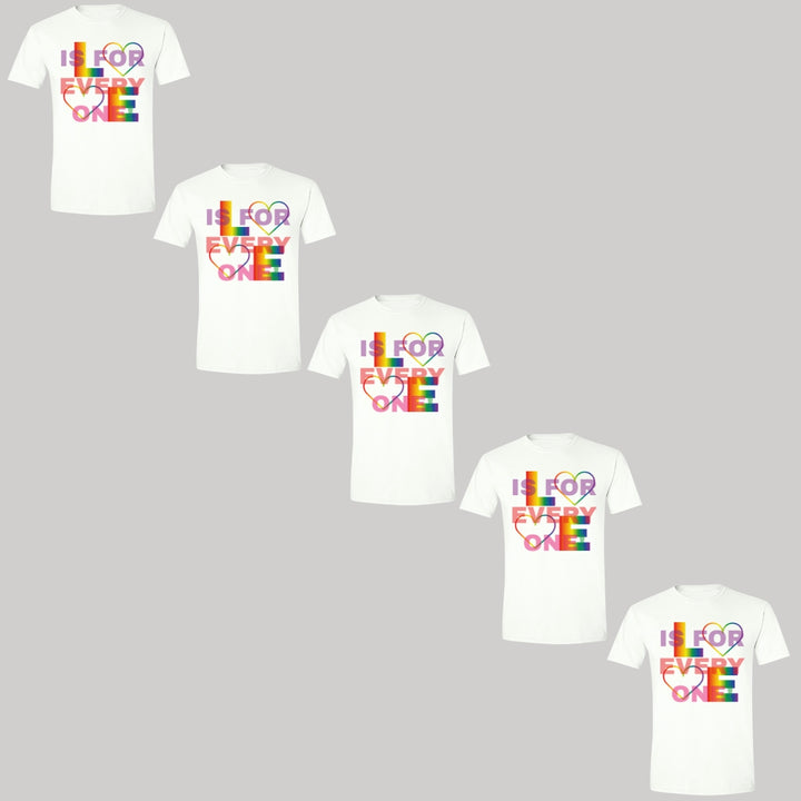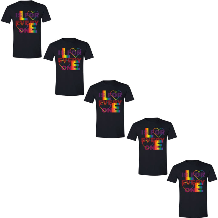 Paquete de 5 playeras de adulto manga corta, cuello redondo para hombre nueva, diseño Pride Love is for everyone original impreso con tecnología DTG (directo a la prenda) tacto cero, uso casual o deportiva, 100% algodón peinado, estructura tubular sin costuras laterales.