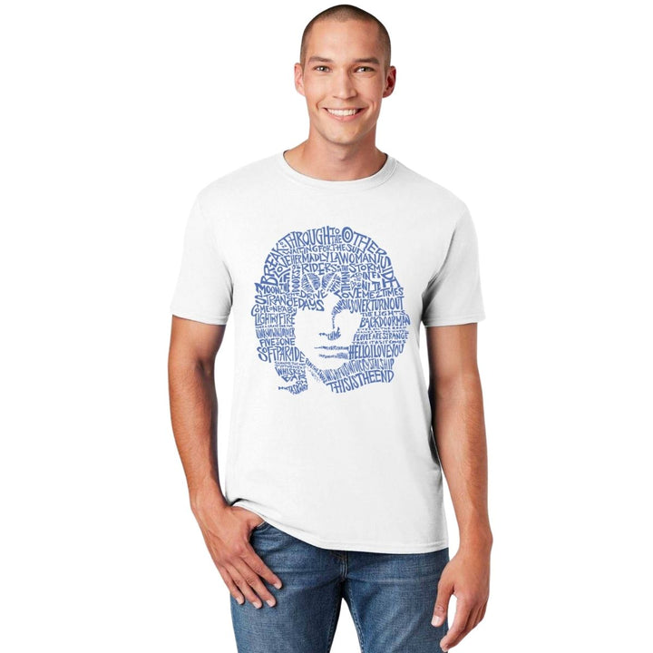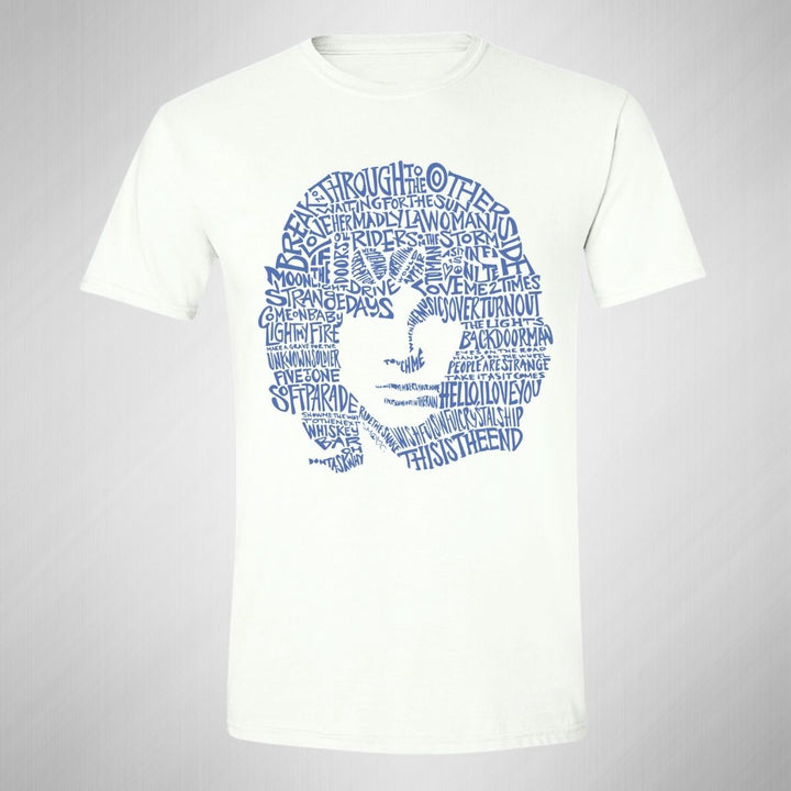 Playera de adulto manga corta, cuello redondo para hombre nueva, diseño Jim Morrison Póster original impreso con tecnología DTG (directo a la prenda) tacto cero, uso casual o deportiva, 100% algodón peinado, estructura tubular sin costuras laterales. Colores de camiseta para caballero: Blanco.
