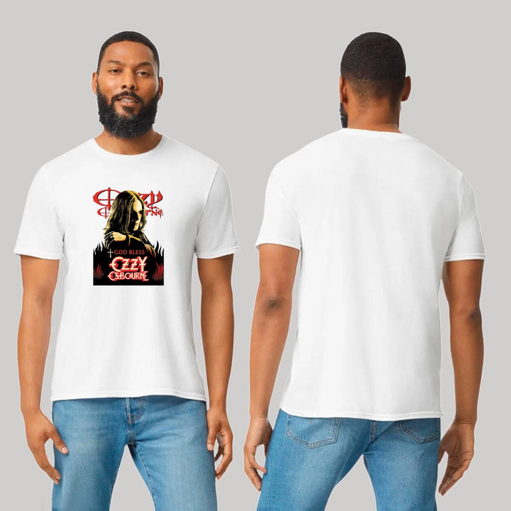 Playera de adulto manga corta, cuello redondo para hombre nueva, diseño Ozzy Osbourne God bless original impreso con tecnología DTG (directo a la prenda) tacto cero, uso casual o deportiva, 100% algodón peinado, estructura tubular sin costuras laterales. Colores de camiseta para caballero: Blanco.
