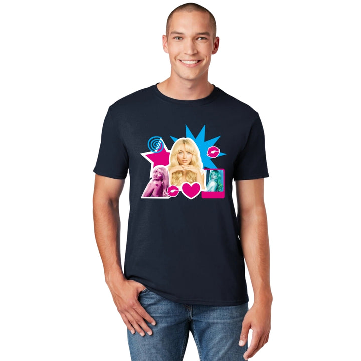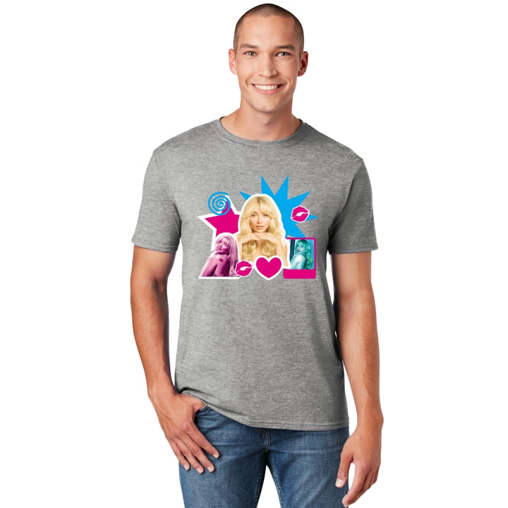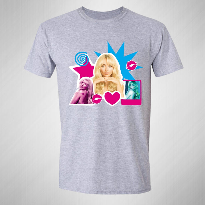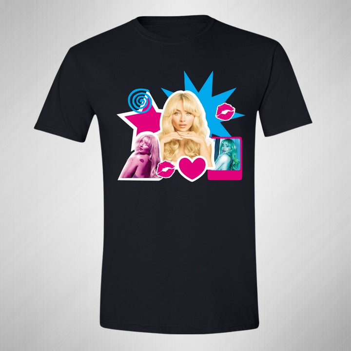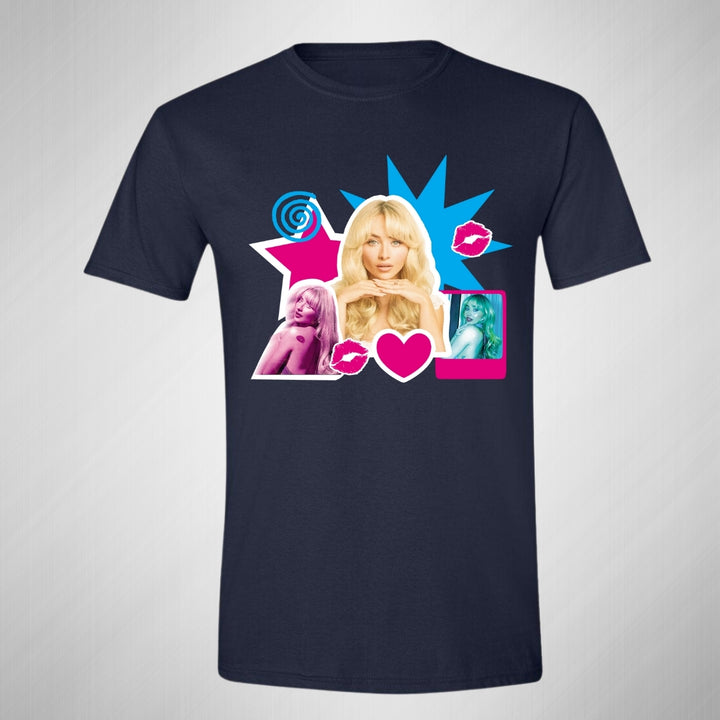 Playera de adulto manga corta, cuello redondo para hombre nueva, diseño Sabrina CaSHenter Concierto original impreso con tecnología DTG (directo a la prenda) tacto cero, uso casual o deportiva, 100% algodón peinado, estructura tubular sin costuras laterales. Colores de camiseta para caballero: Negro, Blanco, Azul Marino, Gris.
