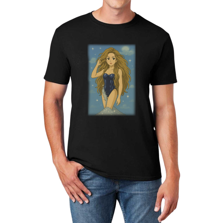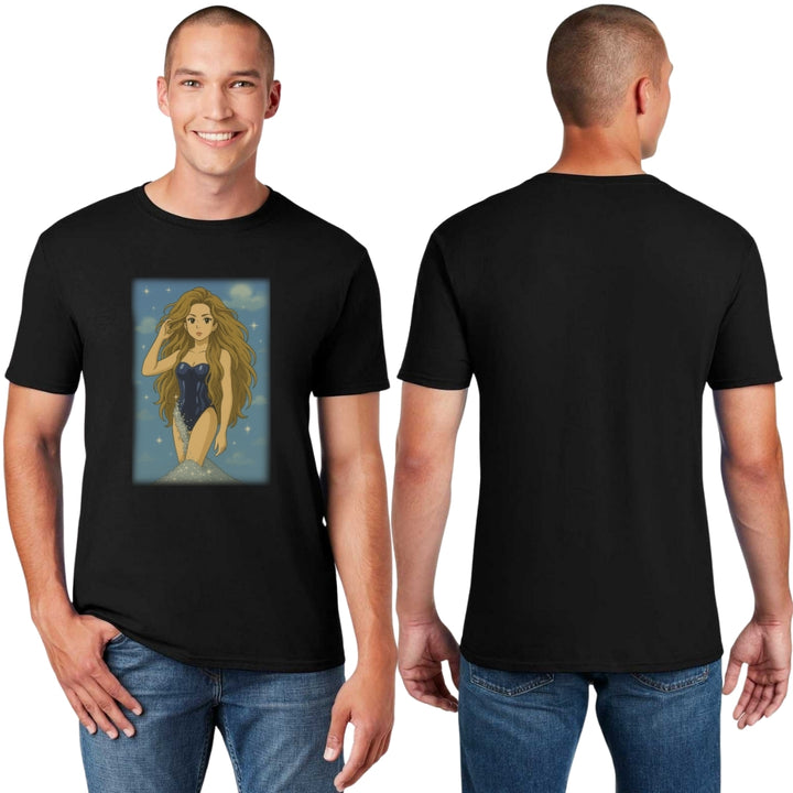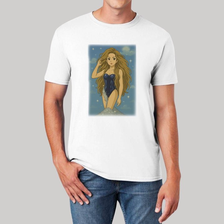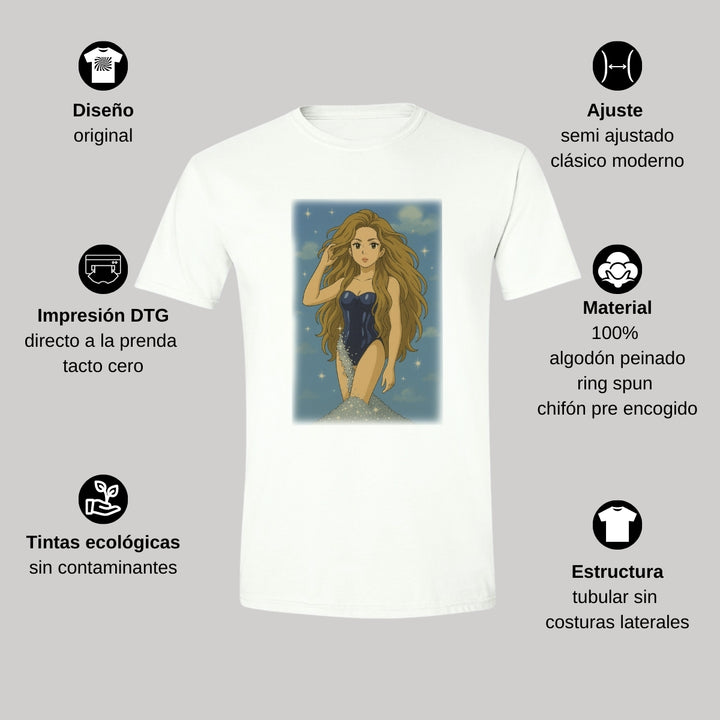 Playera de adulto manga corta, cuello redondo para hombre nueva, diseño Shakira Las mujeres ya no lloran Ghibli original impreso con tecnología DTG (directo a la prenda) tacto cero, uso casual o deportiva, 100% algodón peinado, estructura tubular sin costuras laterales.