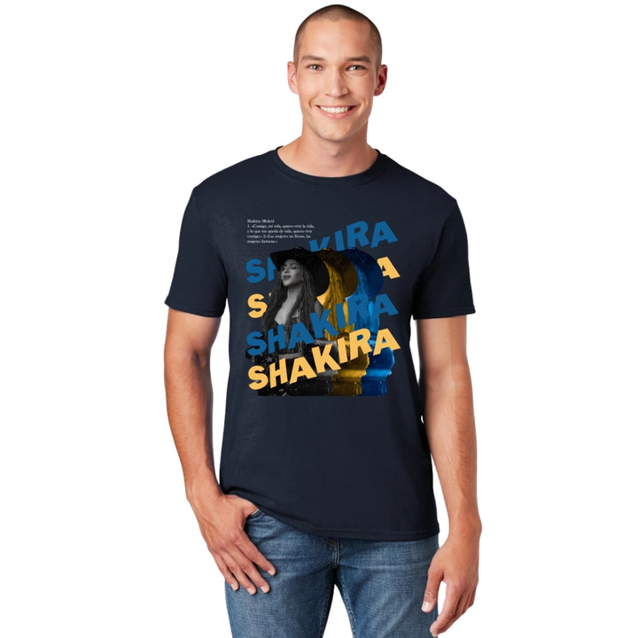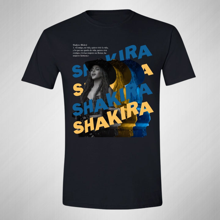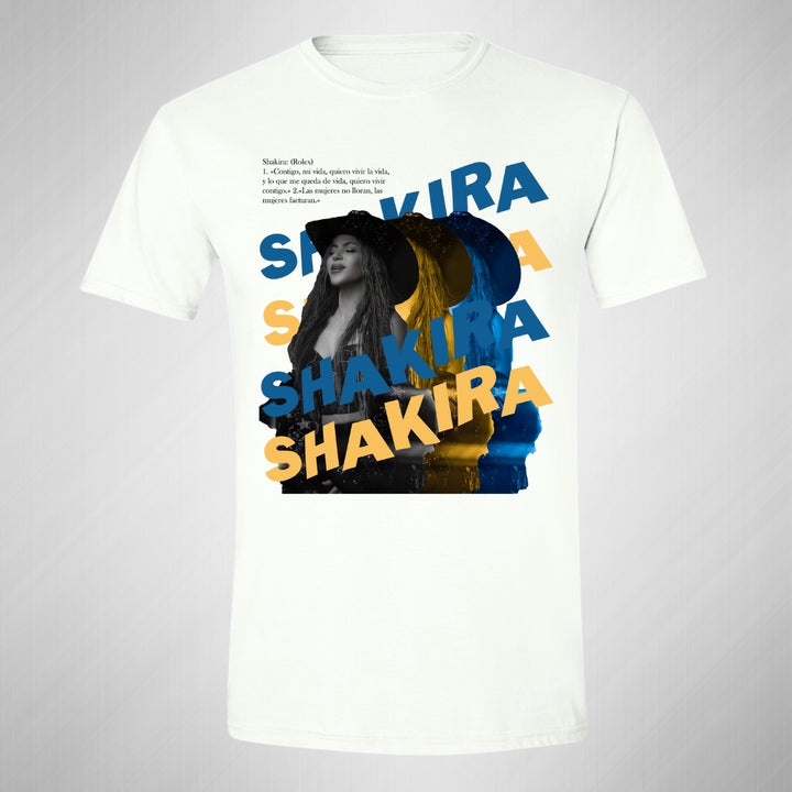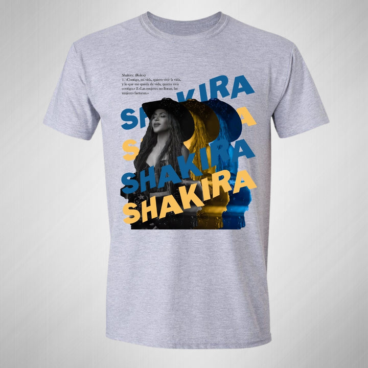 Playera de adulto manga corta, cuello redondo para hombre nueva, diseño Shakira Rolex original impreso con tecnología DTG (directo a la prenda) tacto cero, uso casual o deportiva, 100% algodón peinado, estructura tubular sin costuras laterales. Colores de camiseta para caballero: Blanco, Negro, Azul Marino, Gris.