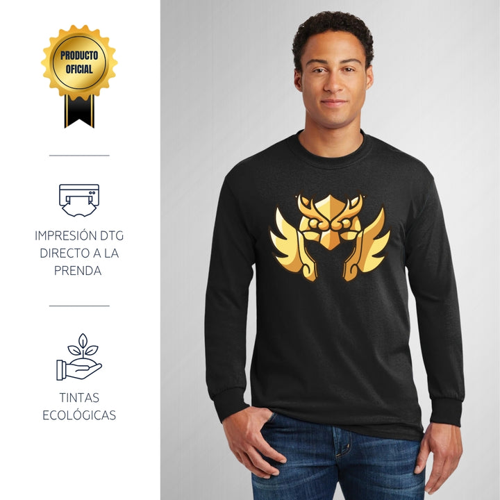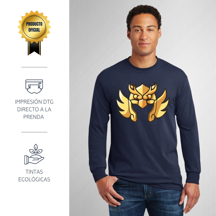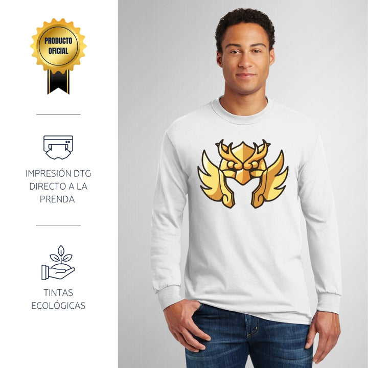 Playera de adulto manga larga, cuello redondo para hombre nueva, diseño Saint Seiya Libra original impreso con tecnología DTG (directo a la prenda) tacto cero, uso casual o deportiva, 100% algodón chifón pre encogido, estructura tubular sin costuras laterales. Colores de camiseta para caballero: Negro, Blanco, Azul Marino.