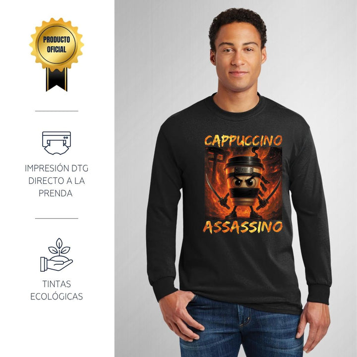 Playera Manga Larga Hombre Brainrot Cappuccino Assassino 001266