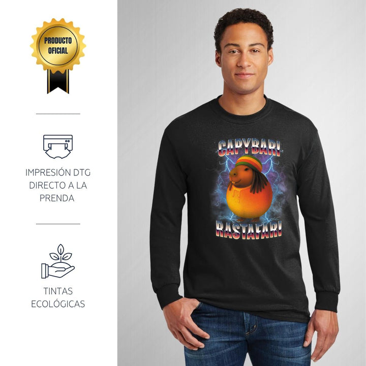 Playera Manga Larga Hombre Brainrot Capybari Rastafari 001267
