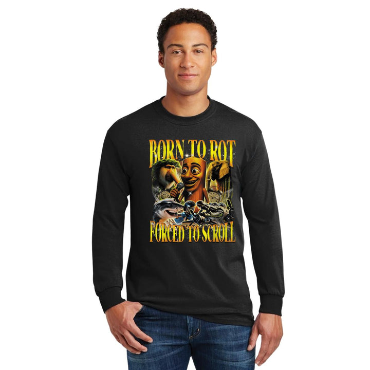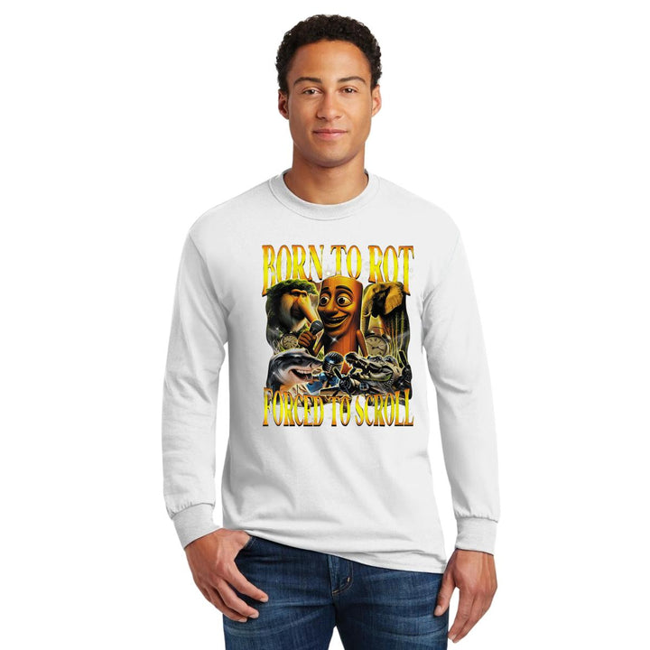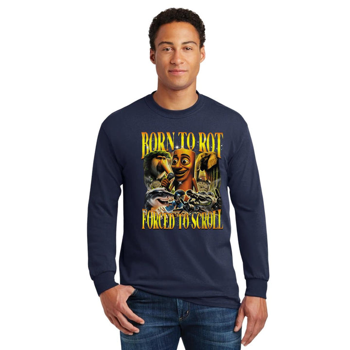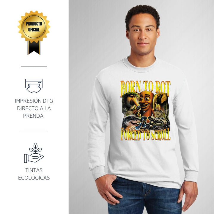 Playera de adulto manga larga, cuello redondo para hombre nueva, diseño Brainrot Italianos original impreso con tecnología DTG (directo a la prenda) tacto cero, uso casual o deportiva, 100% algodón chifón pre encogido, estructura tubular sin costuras laterales. Colores de camiseta para caballero: Negro, Blanco, Azul Marino.