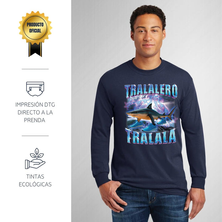 Playera Manga Larga Hombre Brainrot Tralalero Tralala 001263