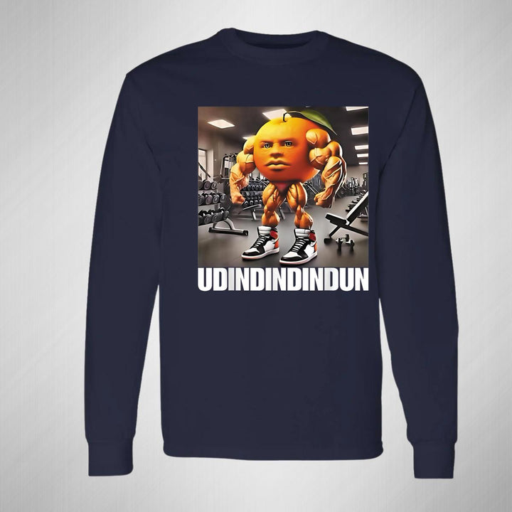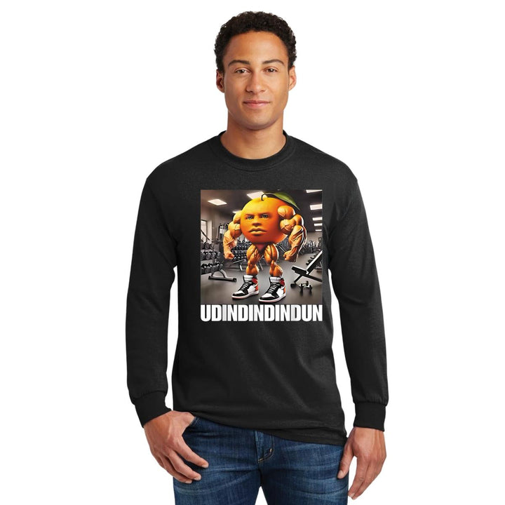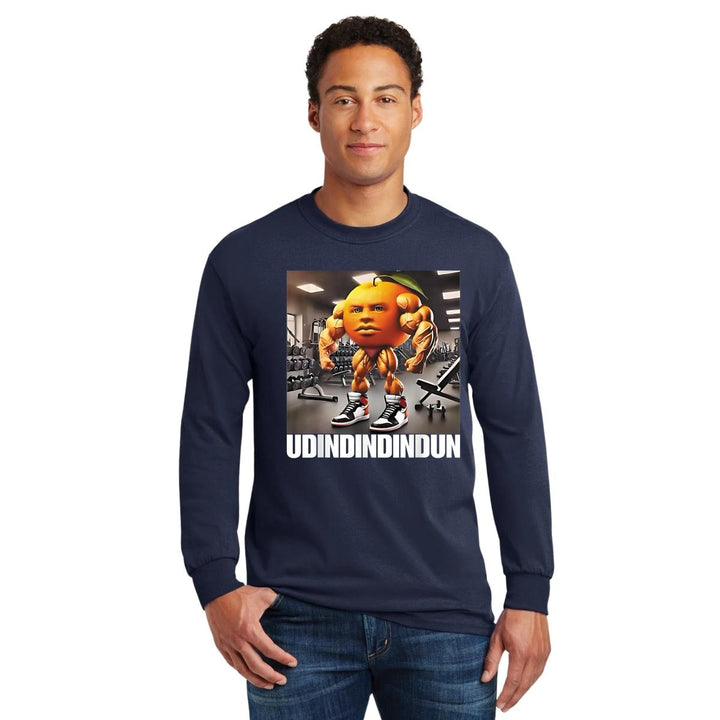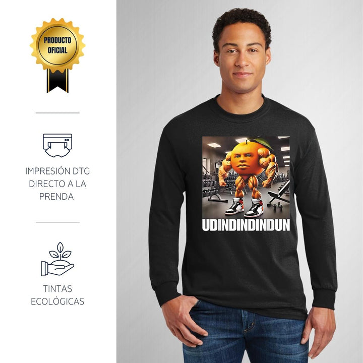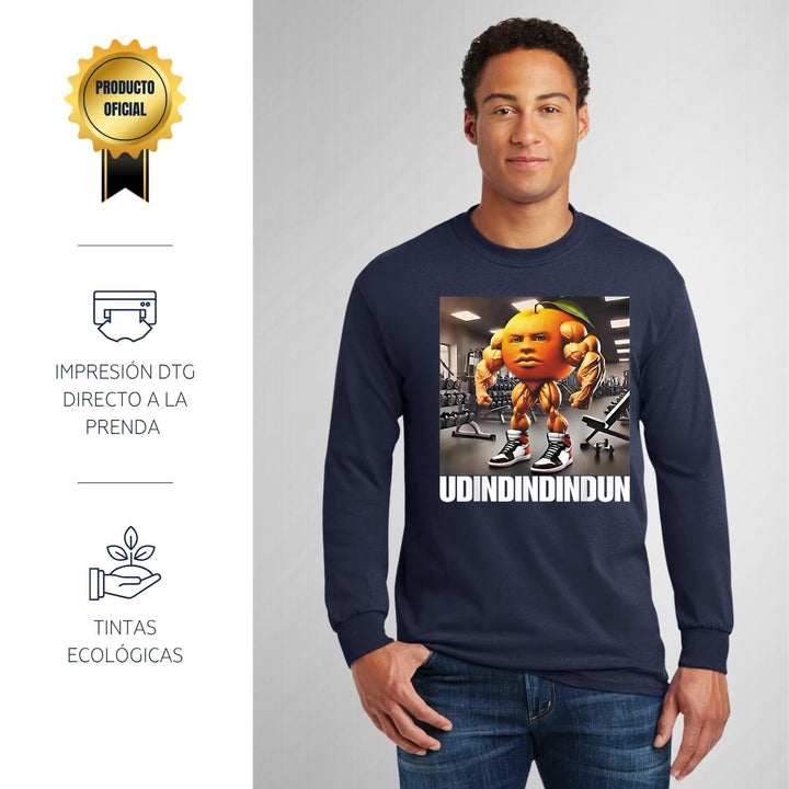 Playera de adulto manga larga, cuello redondo para hombre nueva, diseño Brainrot Udindindindindung original impreso con tecnología DTG (directo a la prenda) tacto cero, uso casual o deportiva, 100% algodón chifón pre encogido, estructura tubular sin costuras laterales. Colores de camiseta para caballero: Negro, Azul Marino.
