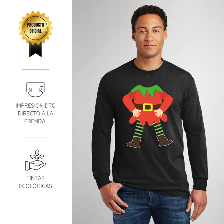 Playera de adulto manga larga, cuello redondo para hombre nueva, diseño Duende original impreso con tecnología DTG (directo a la prenda) tacto cero, uso casual o deportiva, 100% algodón chifón pre encogido, estructura tubular sin costuras laterales. Colores de camiseta para caballero: Negro, Blanco, Azul Marino.