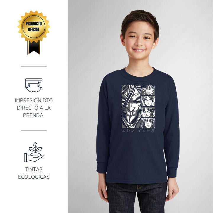 Playera Manga Larga Niños Anime Attack on Titan Eren 000299