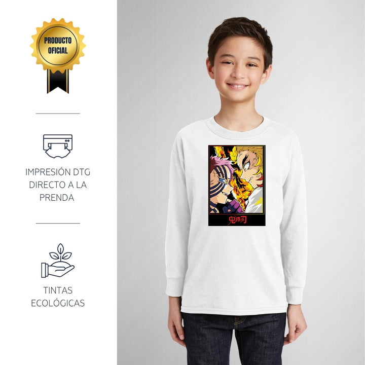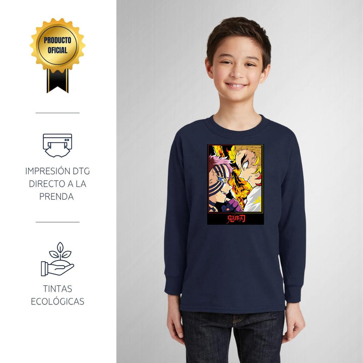 Playera Manga Larga Niños Anime Demon Akaza Rengoku 000582