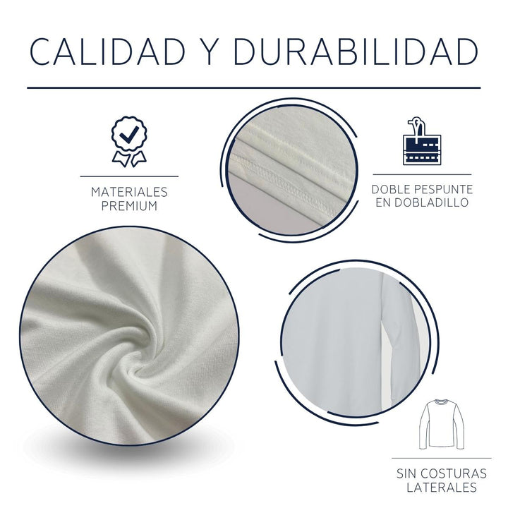 - COMODIDAD Y DURABILIDAD: Su cuello redondo de punto, de ancho clásico y sin costuras brinda comodidad a la prenda. Posee una estructura tubular sin costuras laterales que permite un excelente ajuste y evita su deformidad, proporcionando comodidad duradera durante todo el día.