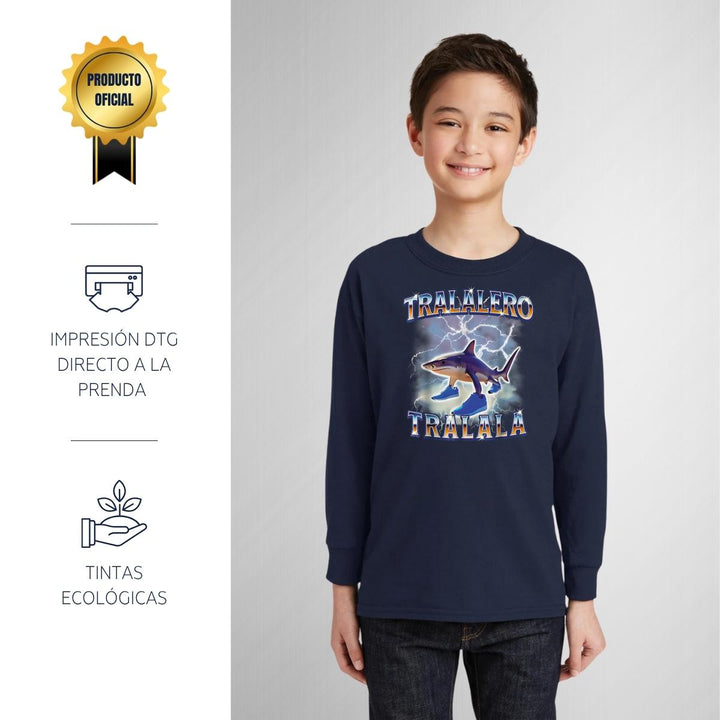 Playera Manga Larga Niños Brainrot Tralalero Tralala 001200