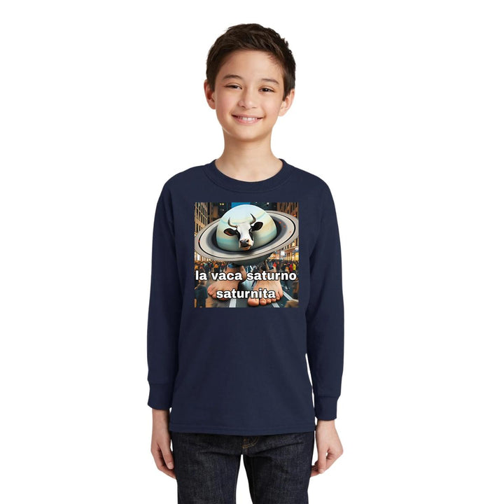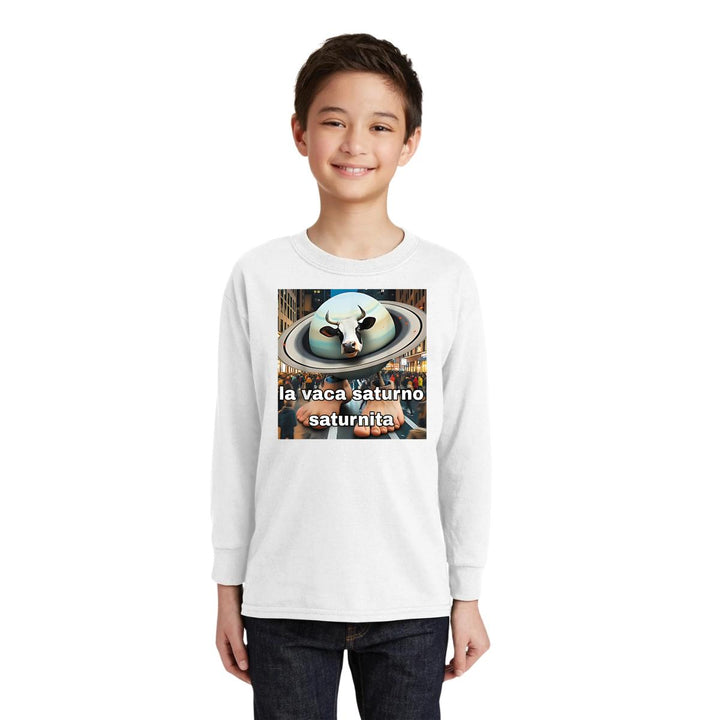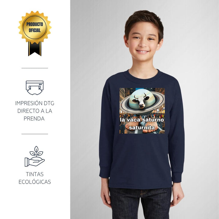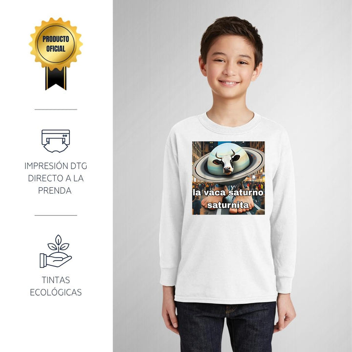 Playera Manga Larga Niños Brainrot Vaca Saturno 001225