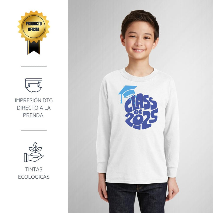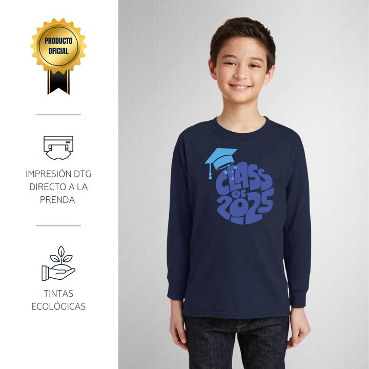 Playera Manga Larga Niños Graduado Birrete Class Of AZ