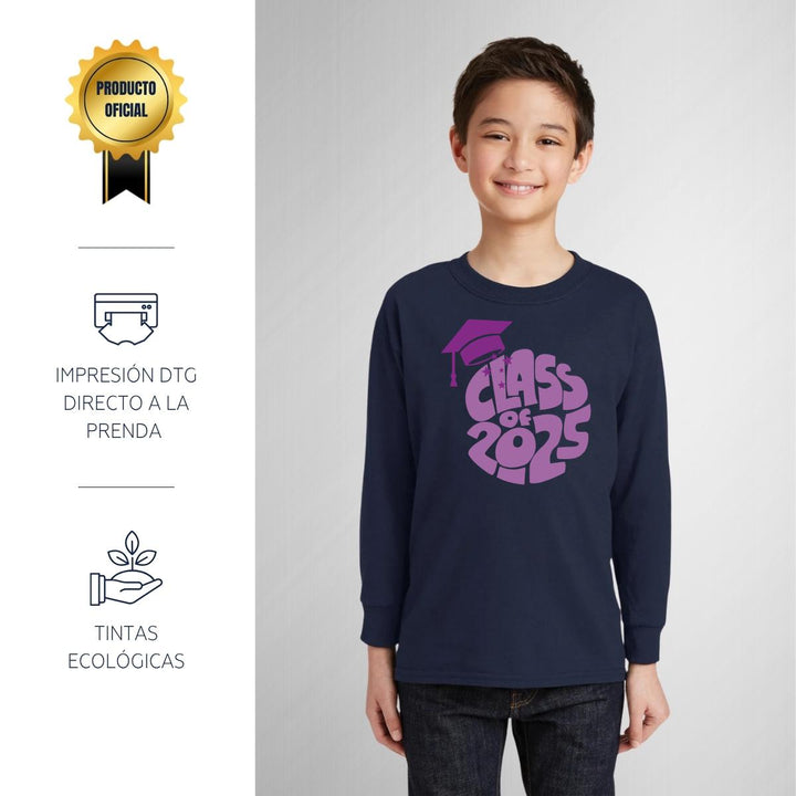 Playera Manga Larga Niños Graduado Birrete Class Of LI