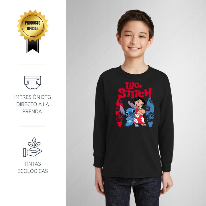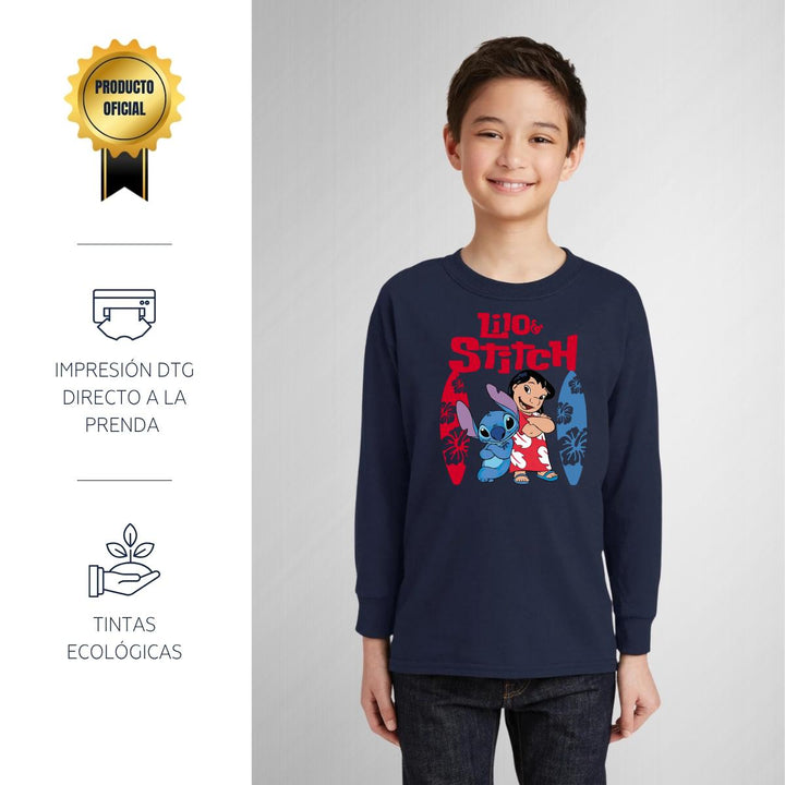 Playera Manga Larga Niños Lilo y Stitch