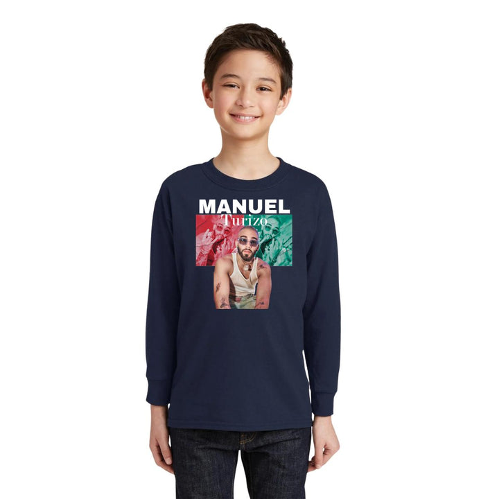 Playera infantil manga larga, cuello redondo para niño o niña nueva, diseño original impreso con tecnología DTG (directo a la prenda) tacto cero, uso casual o deportiva, 100% algodón, estructura tubular sin costuras laterales. Colores de camiseta: Negro, Blanco, Azul Marino.