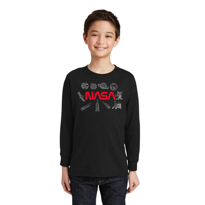 Playera infantil manga larga, cuello redondo para niño o niña nueva, diseño original impreso con tecnología DTG (directo a la prenda) tacto cero, uso casual o deportiva, 100% algodón, estructura tubular sin costuras laterales. Colores de camiseta: Negro, Blanco.